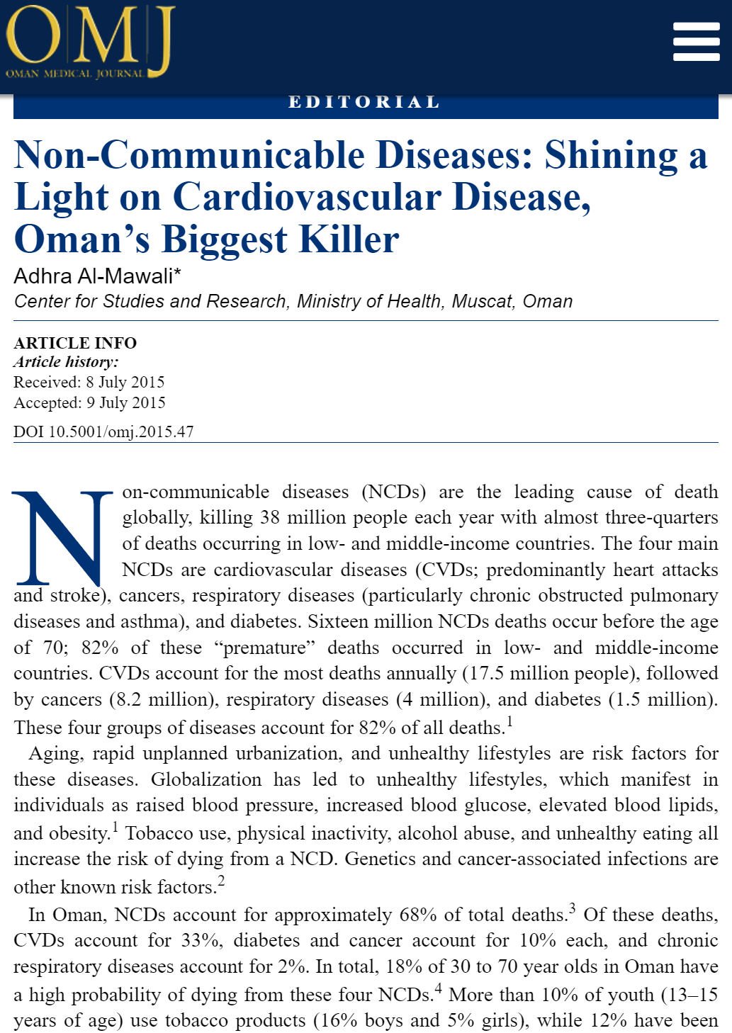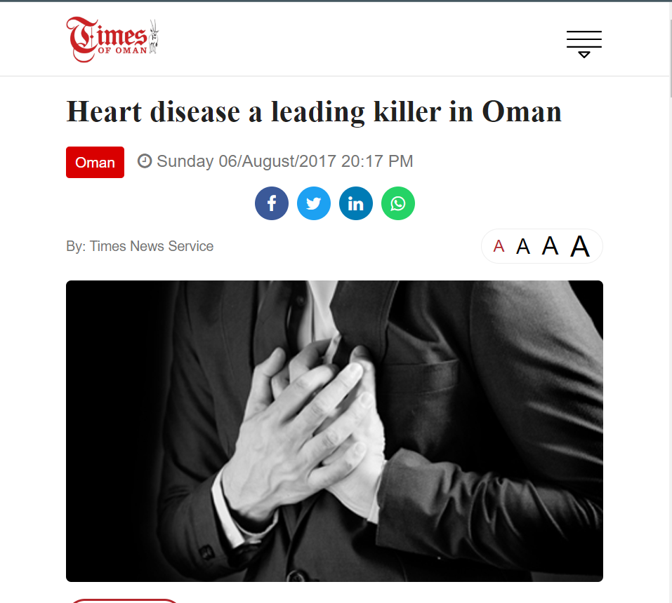 The following articles discuss the increasing cardiovascular challenges in Oman, offering valuable insights into the severity of the issue. Reading them is beneficial for gaining a deeper understanding of the dilemma and exploring ways to actively contribute to mitigating its progression.